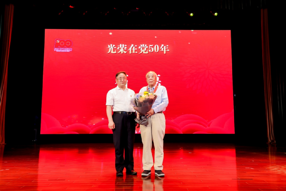 大會(huì)隆重舉行了“光榮在黨50年”紀(jì)念章頒發(fā)儀式,集團(tuán)黨委書(shū)記、董事長(zhǎng)卜玉龍為集團(tuán)老領(lǐng)導(dǎo)、老黨員石磊頒發(fā)并佩戴紀(jì)念章,向他致以崇高的敬意,感謝他為中智集團(tuán)作出的積極貢獻(xiàn)。