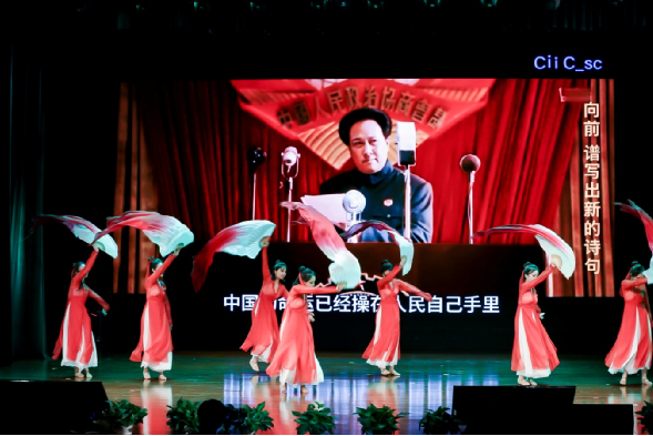 表彰中間,來(lái)自集團(tuán)各條戰(zhàn)線的員工穿插表演了《長(zhǎng)征組歌》《英雄贊歌》《不忘初心 向黨表白》《燈火里的中國(guó)》《華夏》《黨建rap》等反映中國(guó)共產(chǎn)黨革命、建設(shè)、改革和進(jìn)入新時(shí)代各個(gè)時(shí)期歷史及黨的十八大以來(lái),在以習(xí)近平同志為核心的黨中央堅(jiān)強(qiáng)領(lǐng)導(dǎo)下,集團(tuán)改革發(fā)展和黨建工作取得新成效的精彩節(jié)目,集體合唱《歌唱祖國(guó)》把大會(huì)推向高潮。
